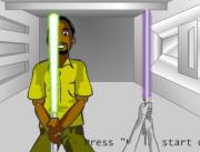 Description: Battle against enemies with flash sabres or lightsabres, block hits and attack the enemy with slashes.